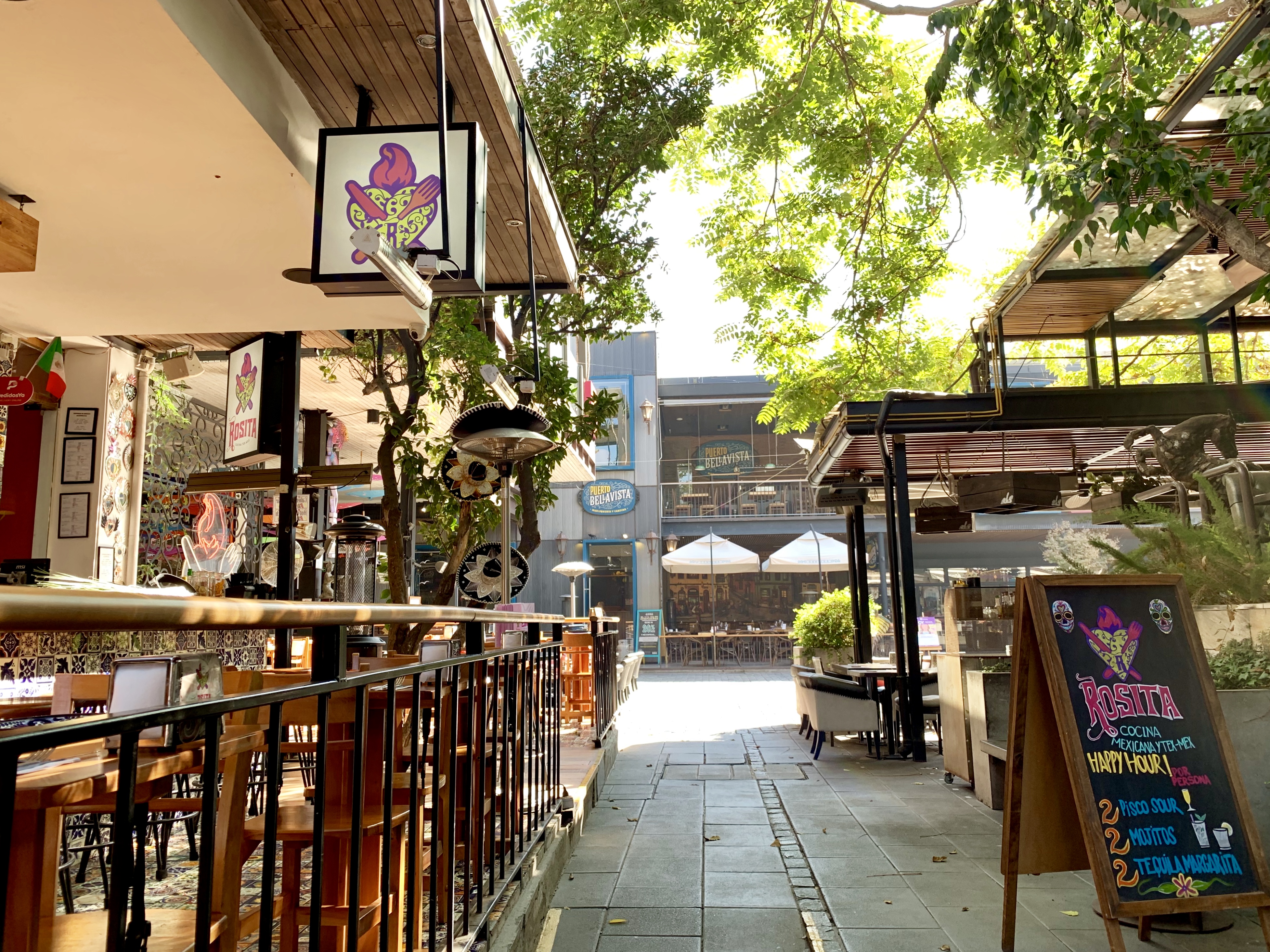Le patio Bellavista où de nombreux restaurants et bars sont regroupés. La photo a été prise de jour mais l’endroit est bondé dès la nuit tombée.