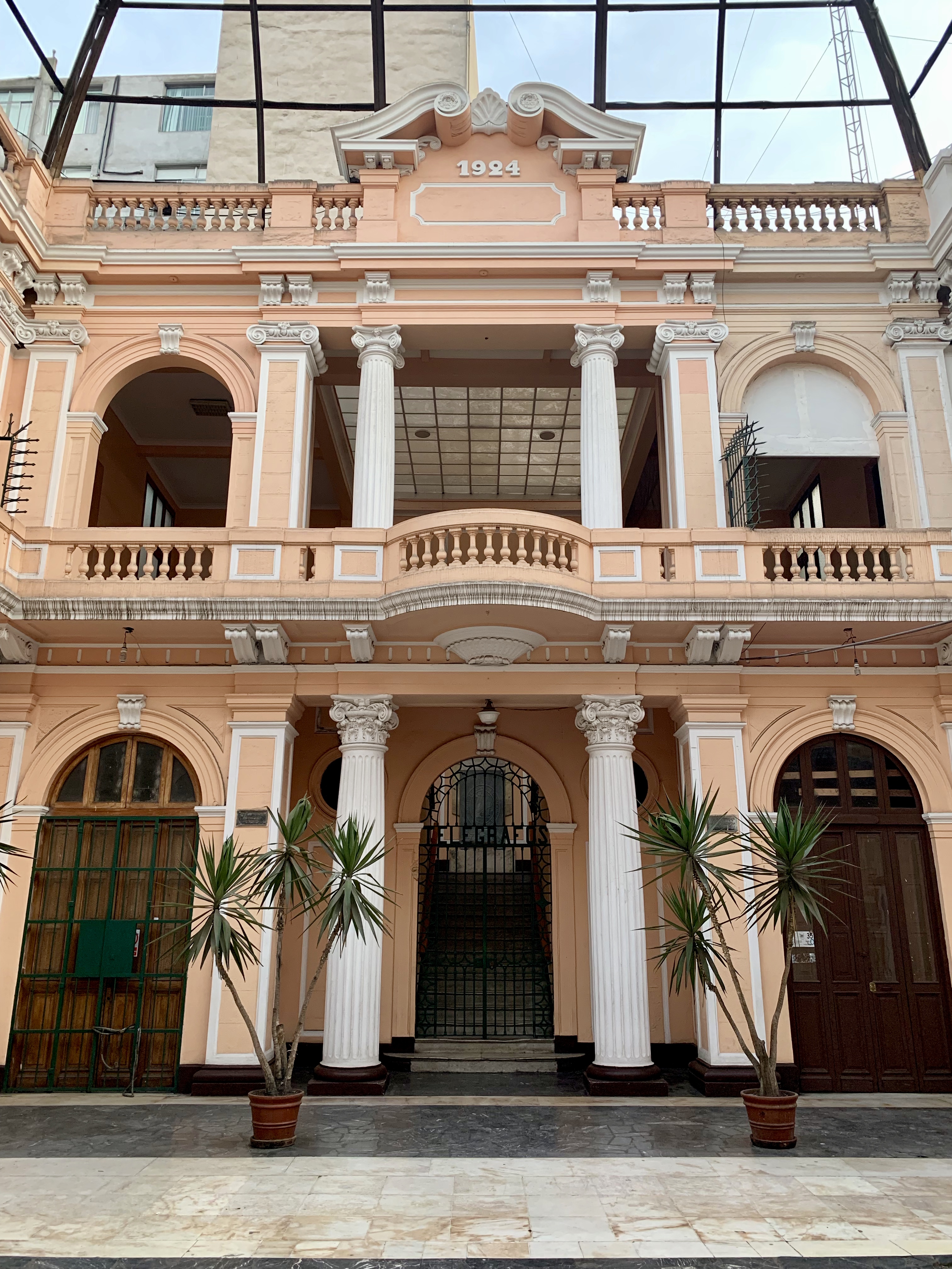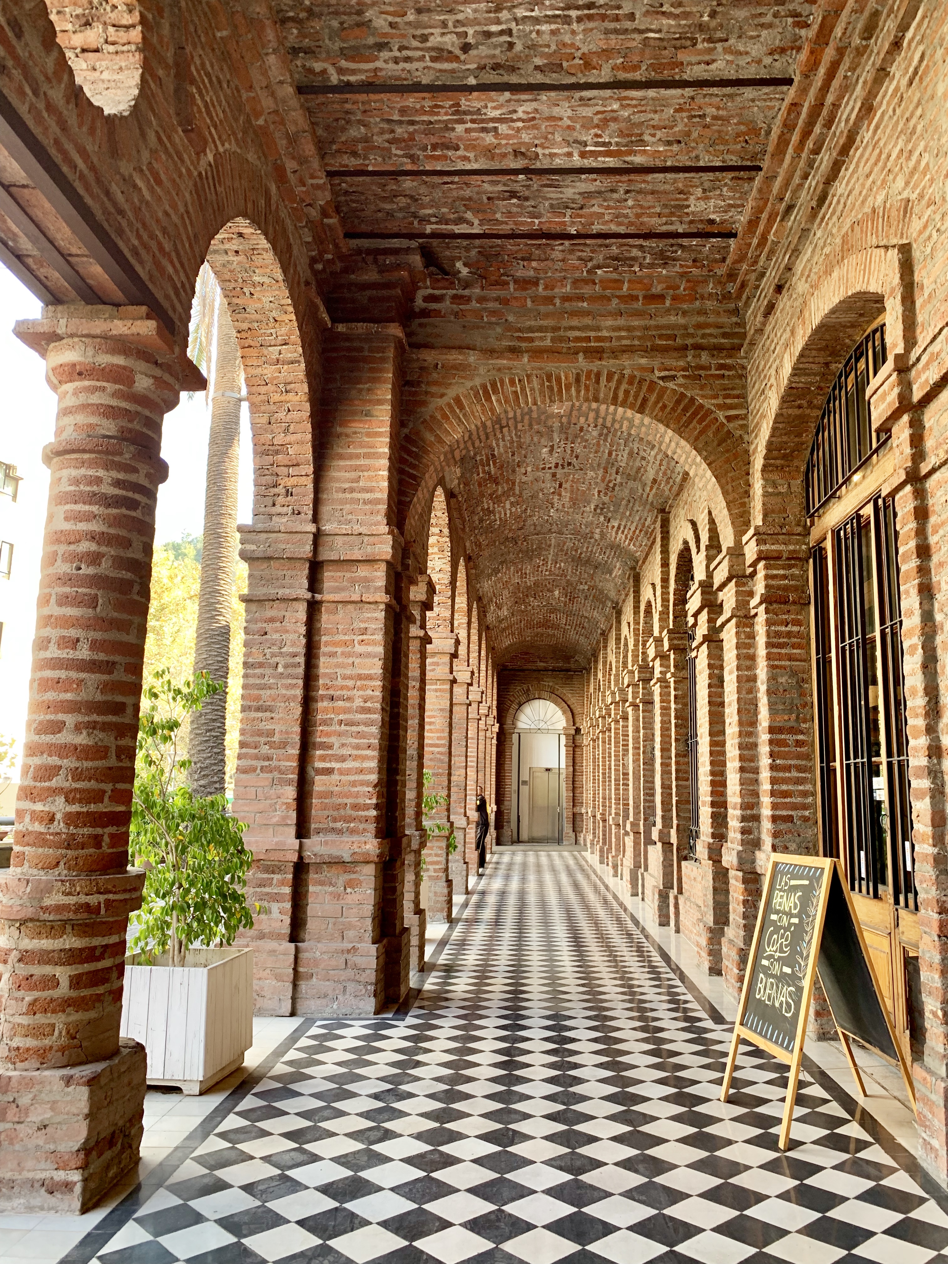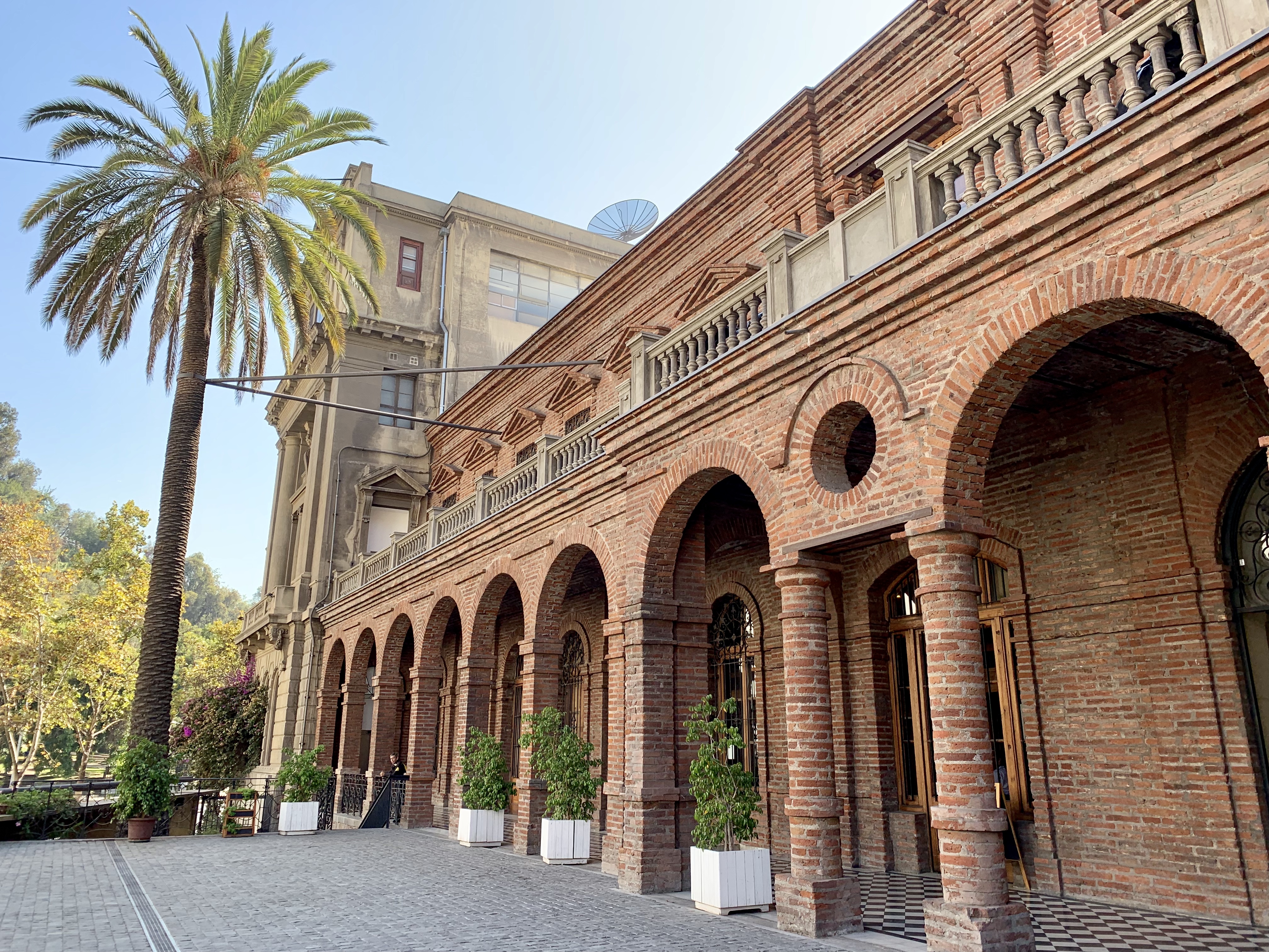 L’université pontificale catholique du Chili, vue de derrière où les colonnes apportent beaucoup de charme.