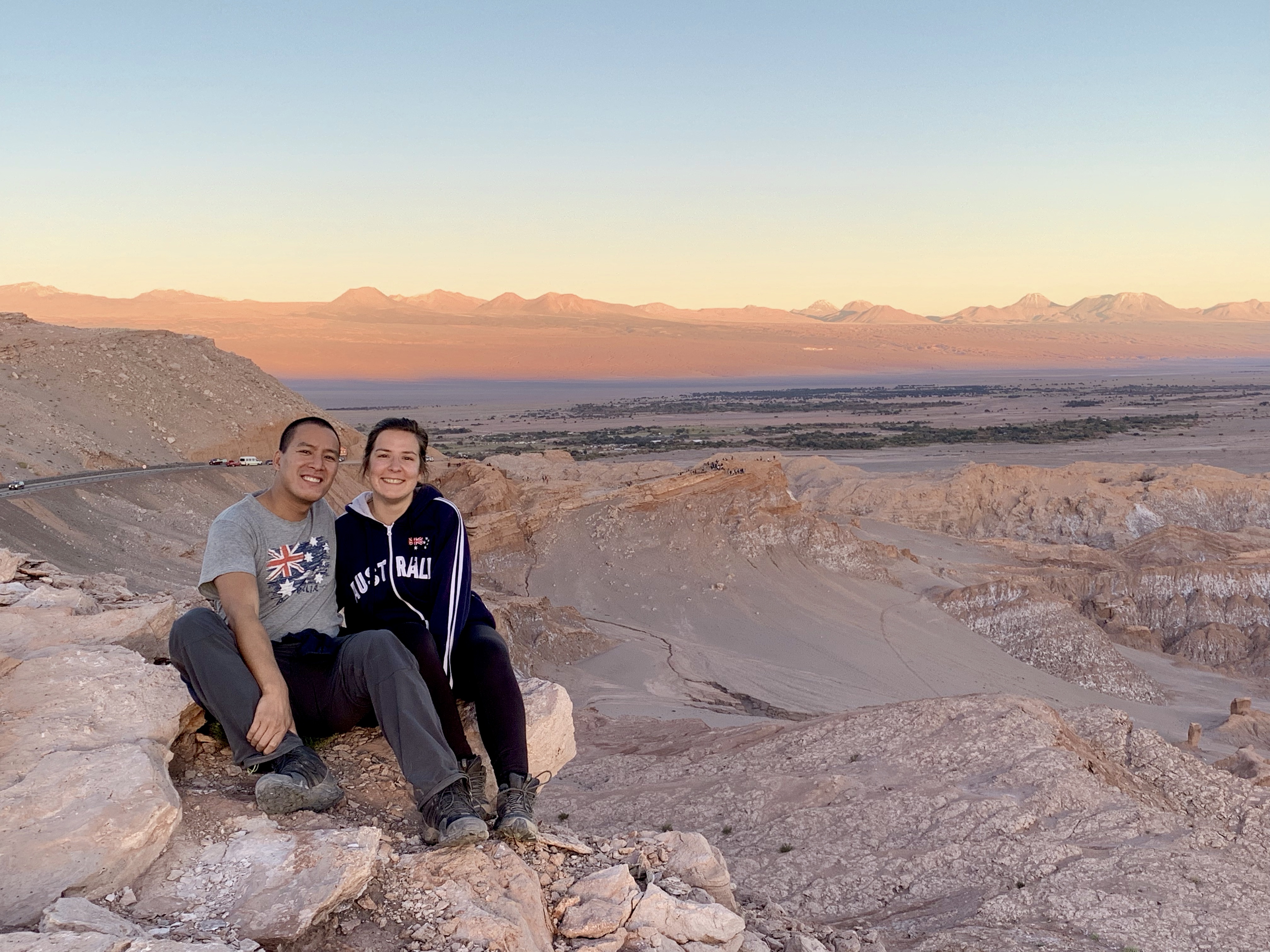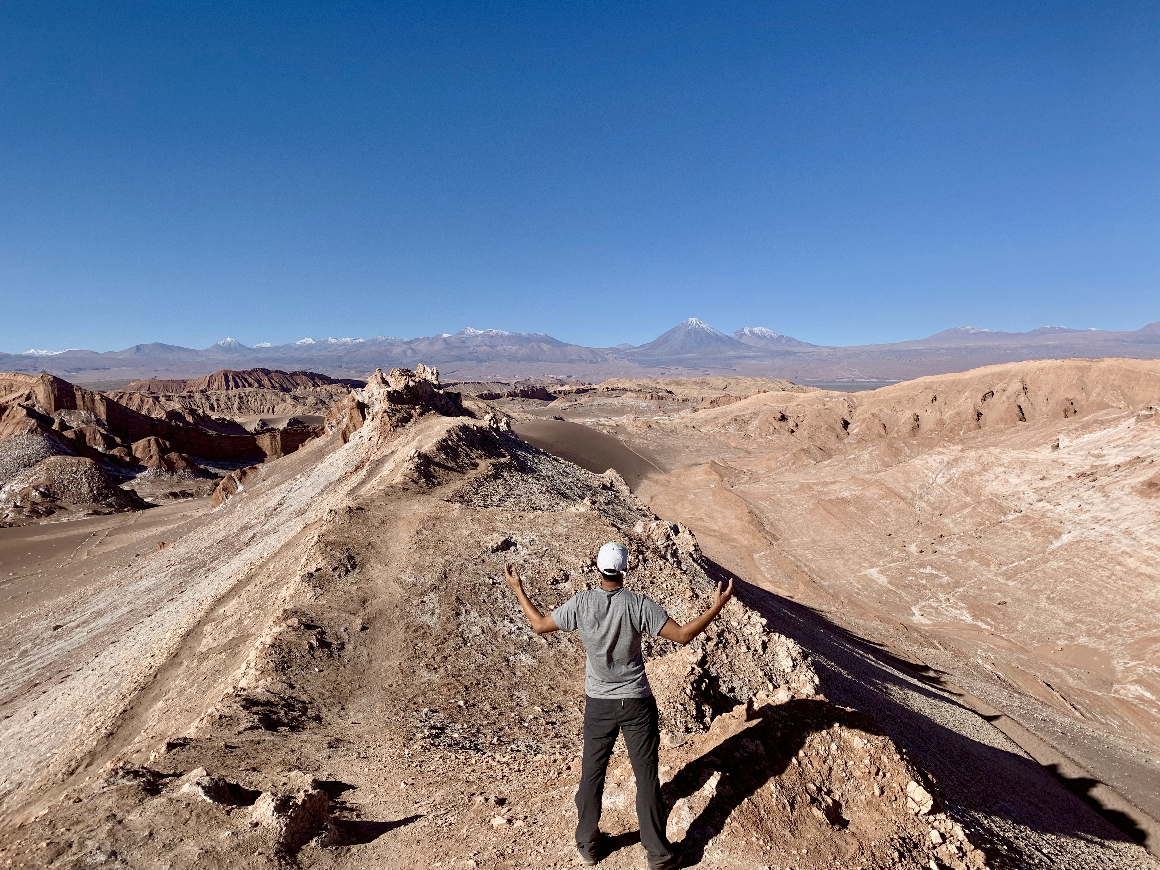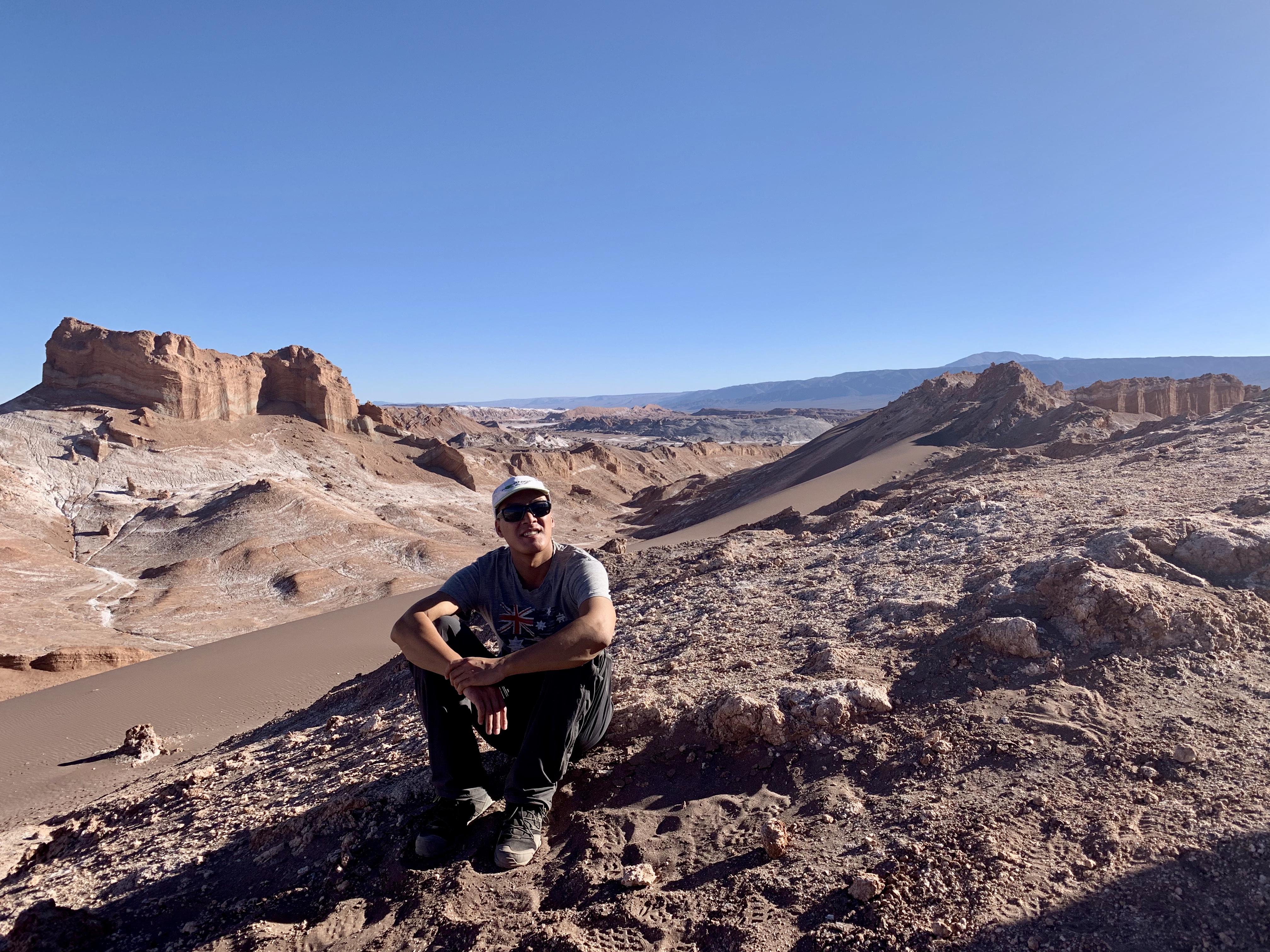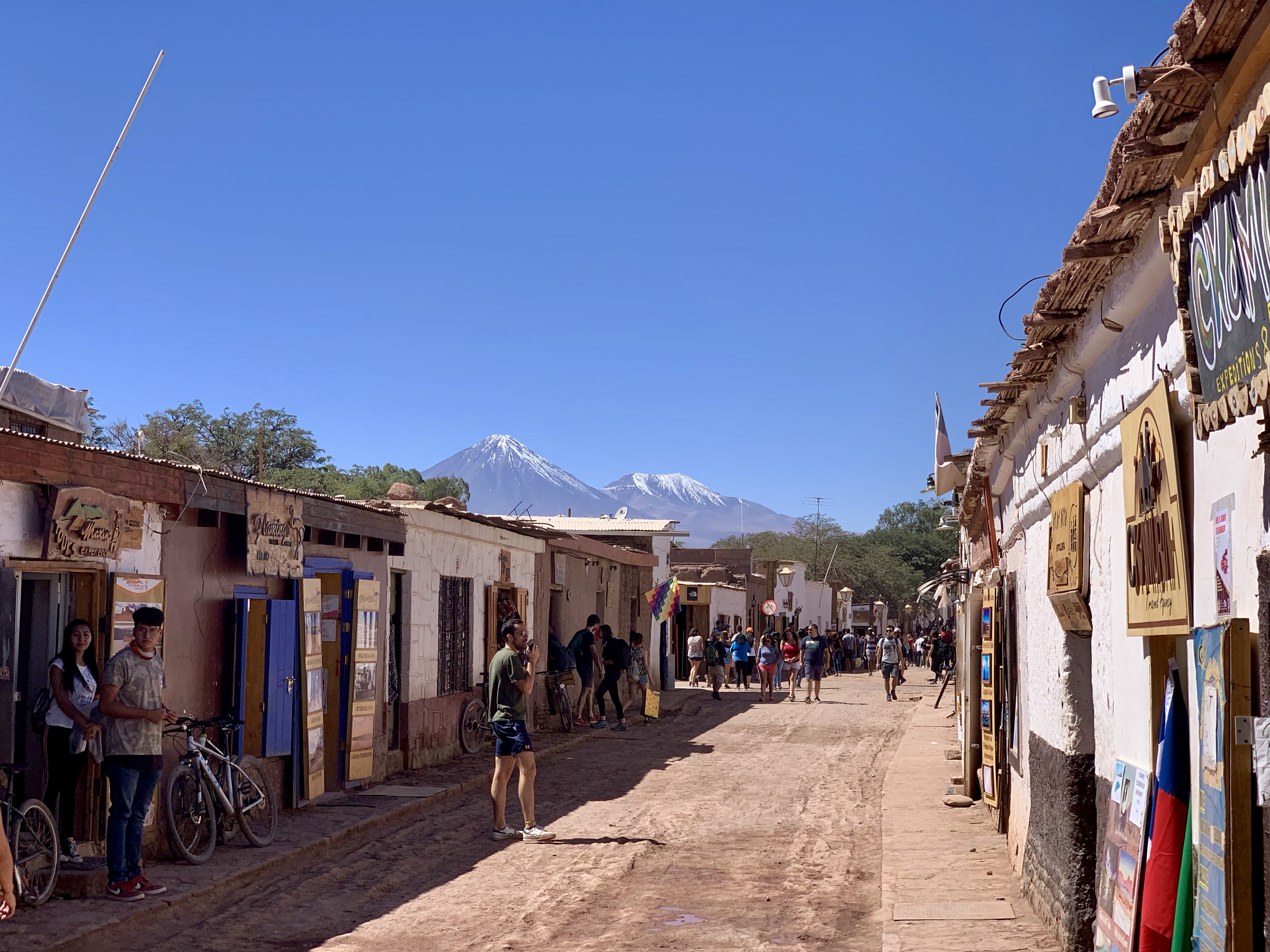 Nous prenons un avion depuis Santiago jusqu’à Antofagasta, puis un bus jusqu’à San Pedro de Atacama, village-oasis situé dans le désert d’Atacama. L’endroit est parfait pour observer les étoiles, d’ailleurs, il y a un centre d’observation réputé mondialement et qui a donné de précieuses informations pour prendre la première photo d’un trou noir.
