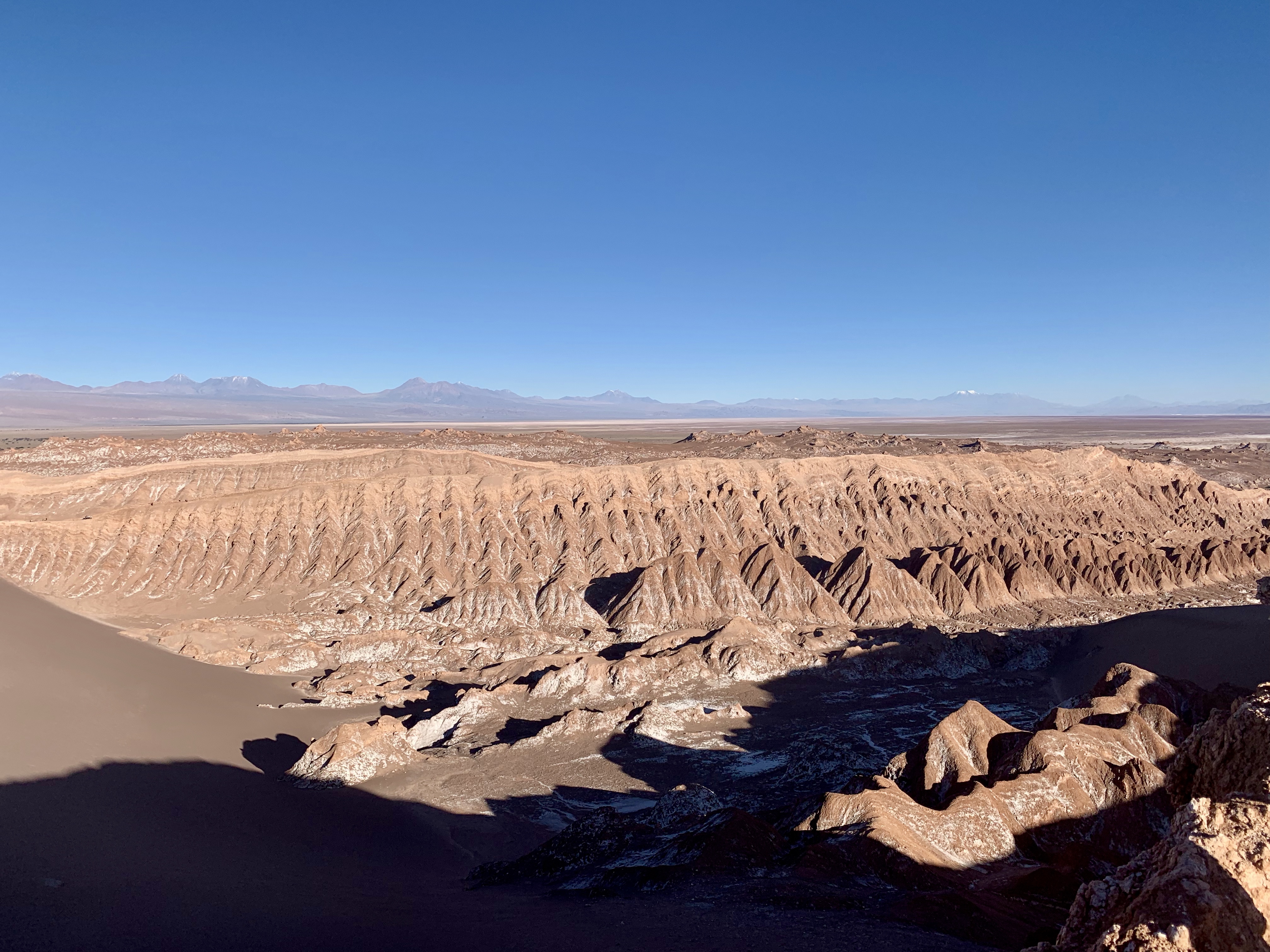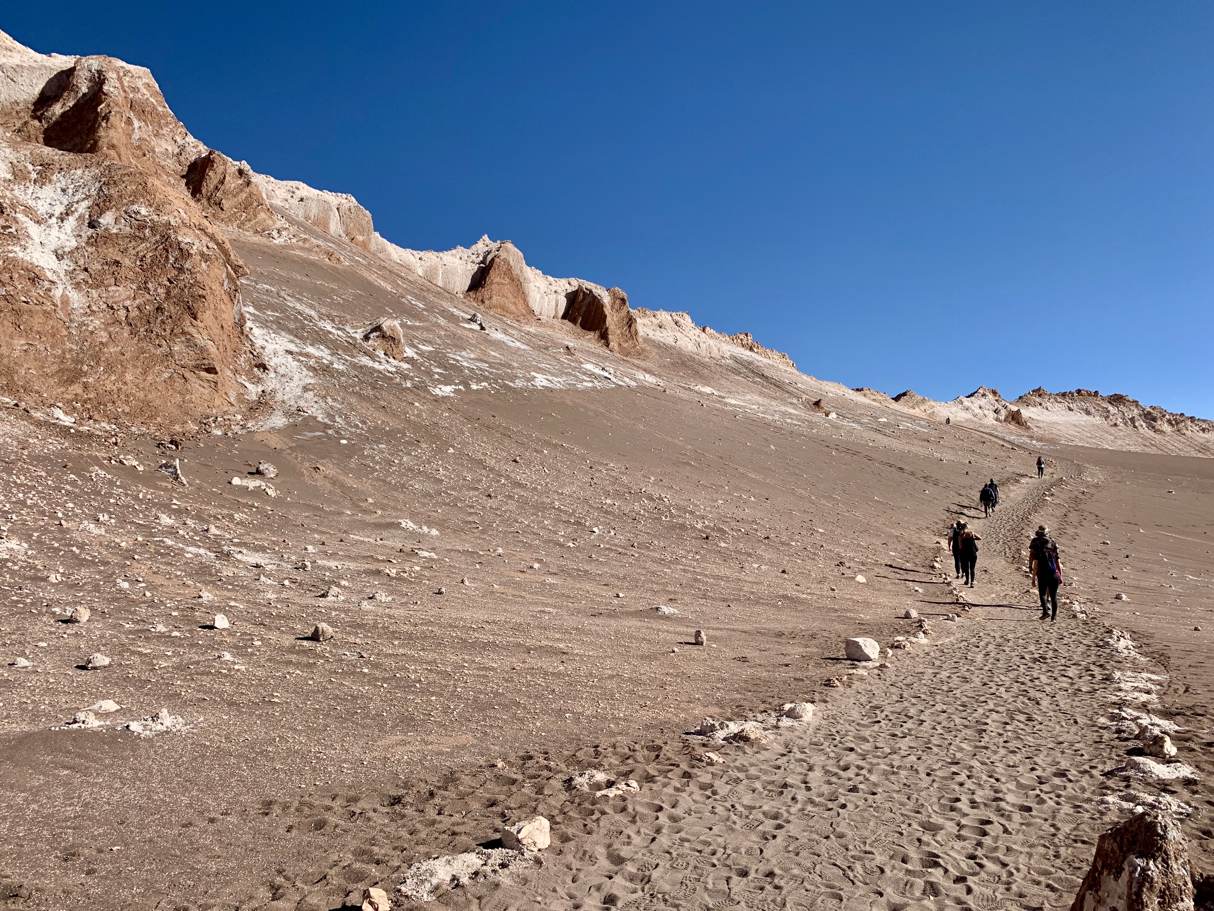 Il y a beaucoup de sites à visiter aux alentours de San Pedro de Atacama dont la Vallée de la lune, ancienne mer intérieure qui a disparu et a laissé le sel dans le sol. Il n’y a aucune forme de vie à cause des conditions extrêmes du site.