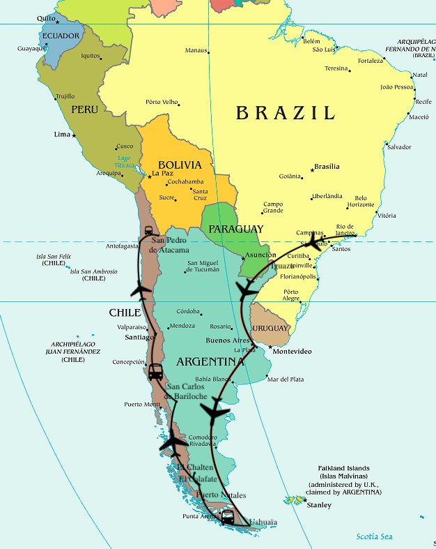Dernière carte récapitulative de notre voyage en Amérique du Sud