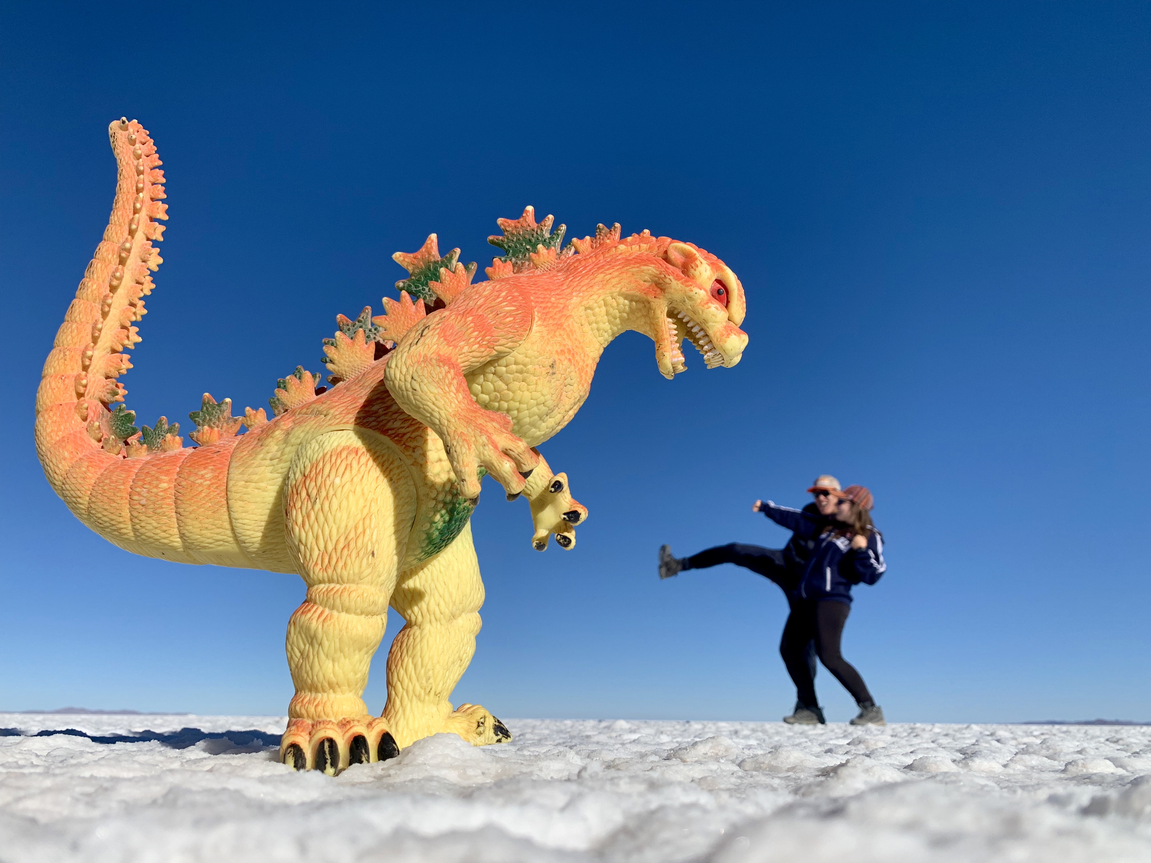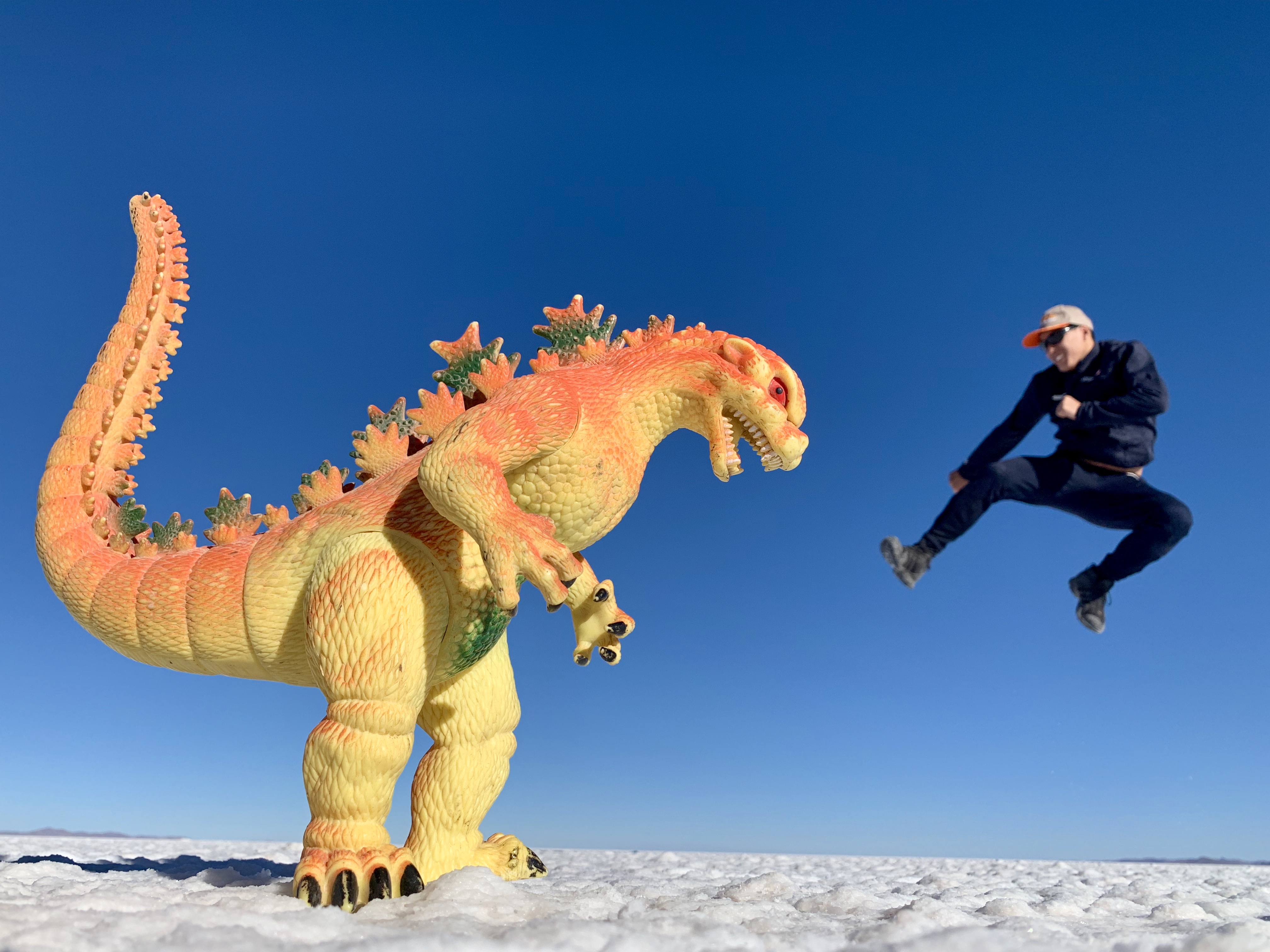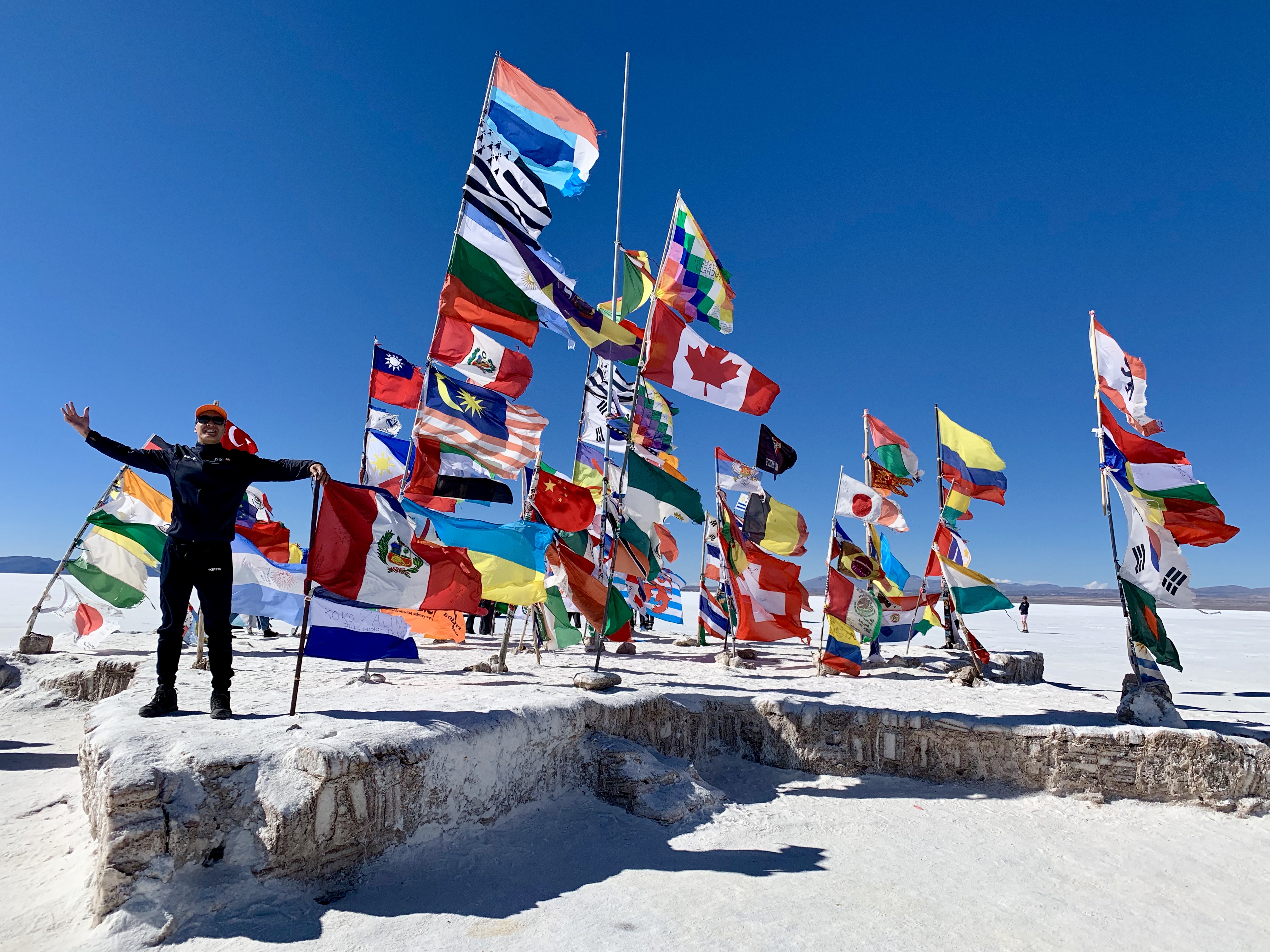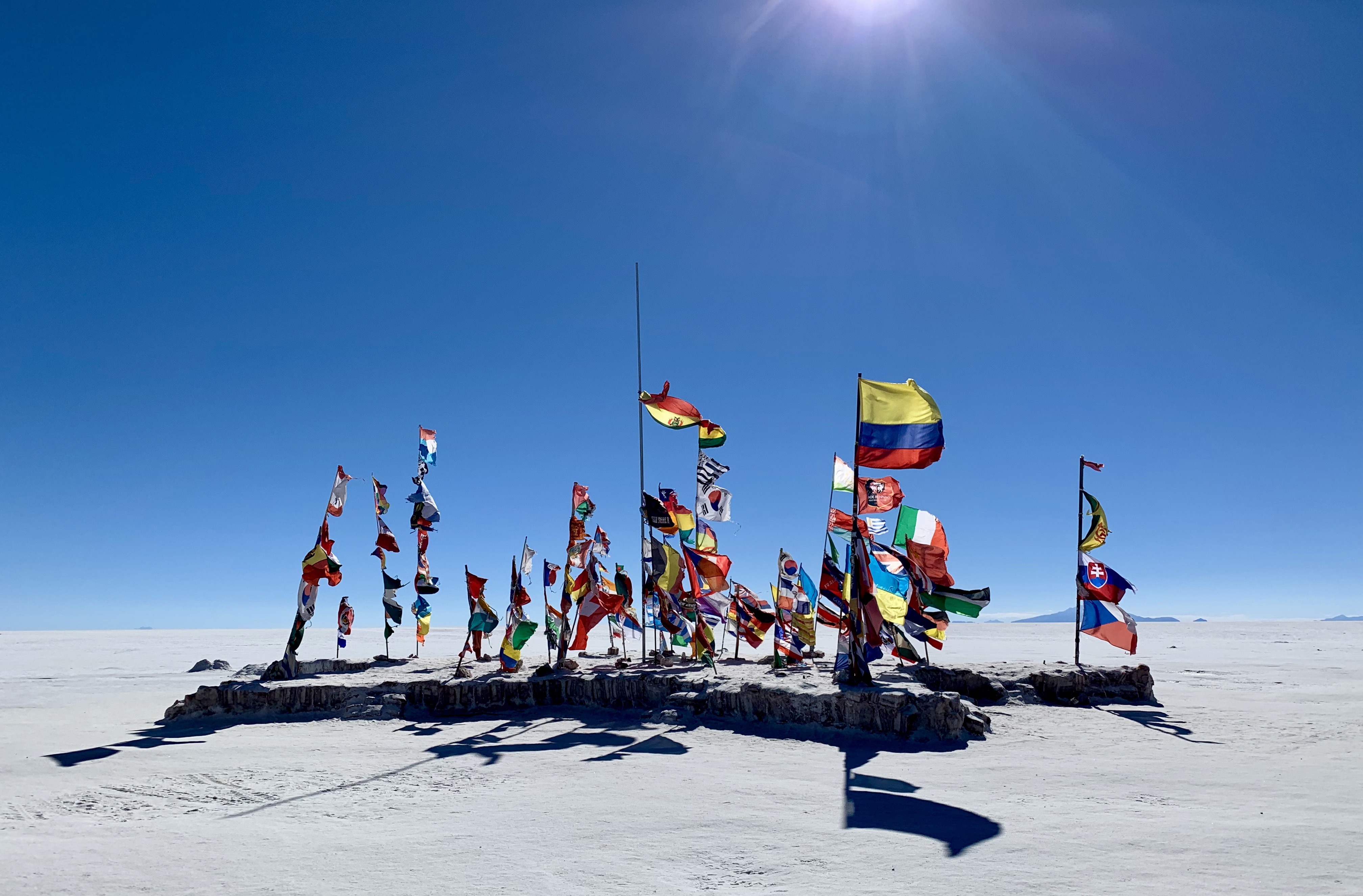 C’est le site phare de la région, le désert de sel d’Uyuni est le plus grand désert de sel du monde avec plus de 10 000 km2. Il tient ses origines dans la disparition du lac préhistorique Tauca il y a 14 000 ans. Il en reste une croute de sel regorgeant de lithium (environ 5,5 millions de tonnes exploitables). Le but est de faire des photos avec un effet d’optique incroyable dû à la perspective qu’il y a dans le désert de sel.