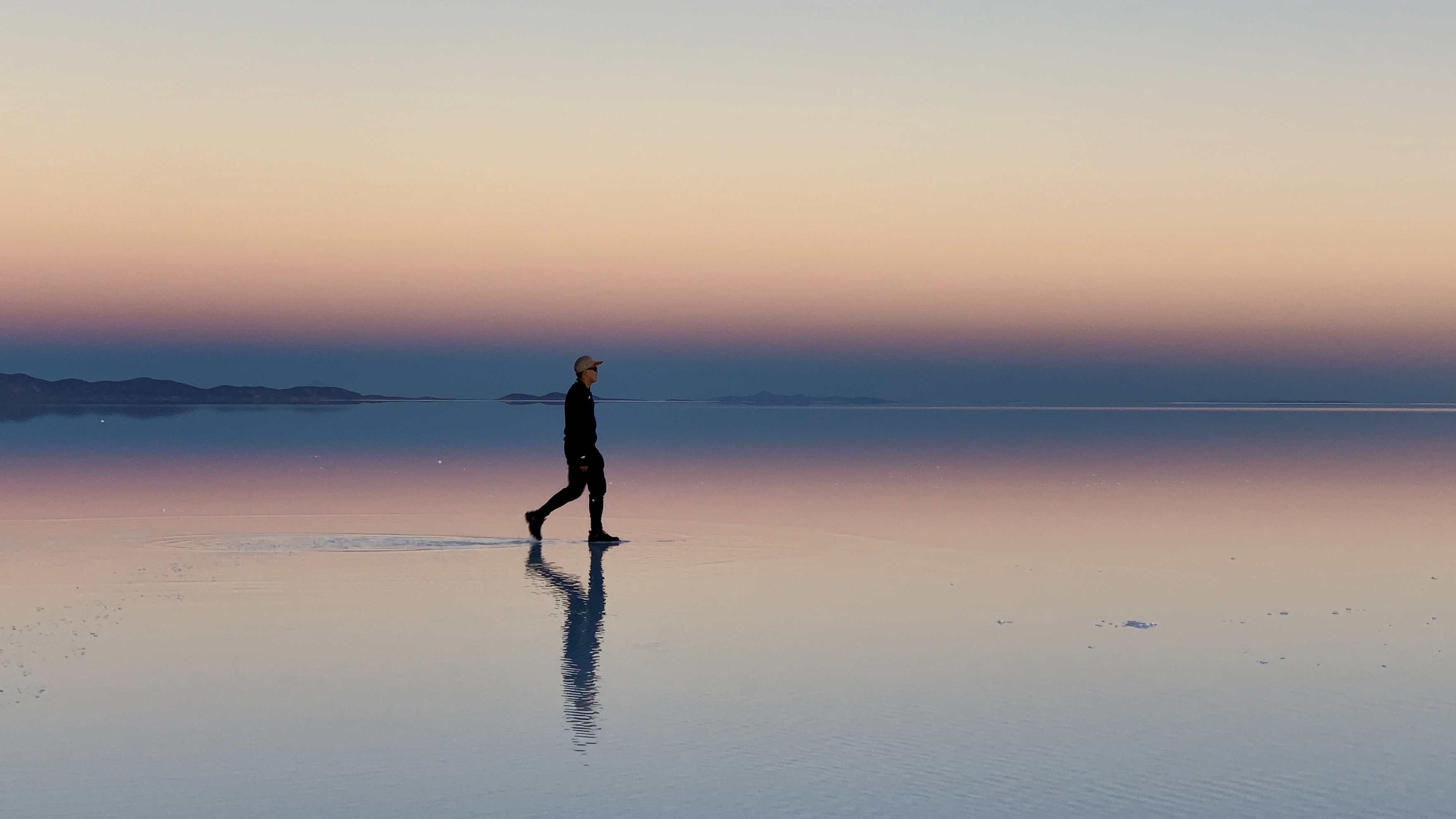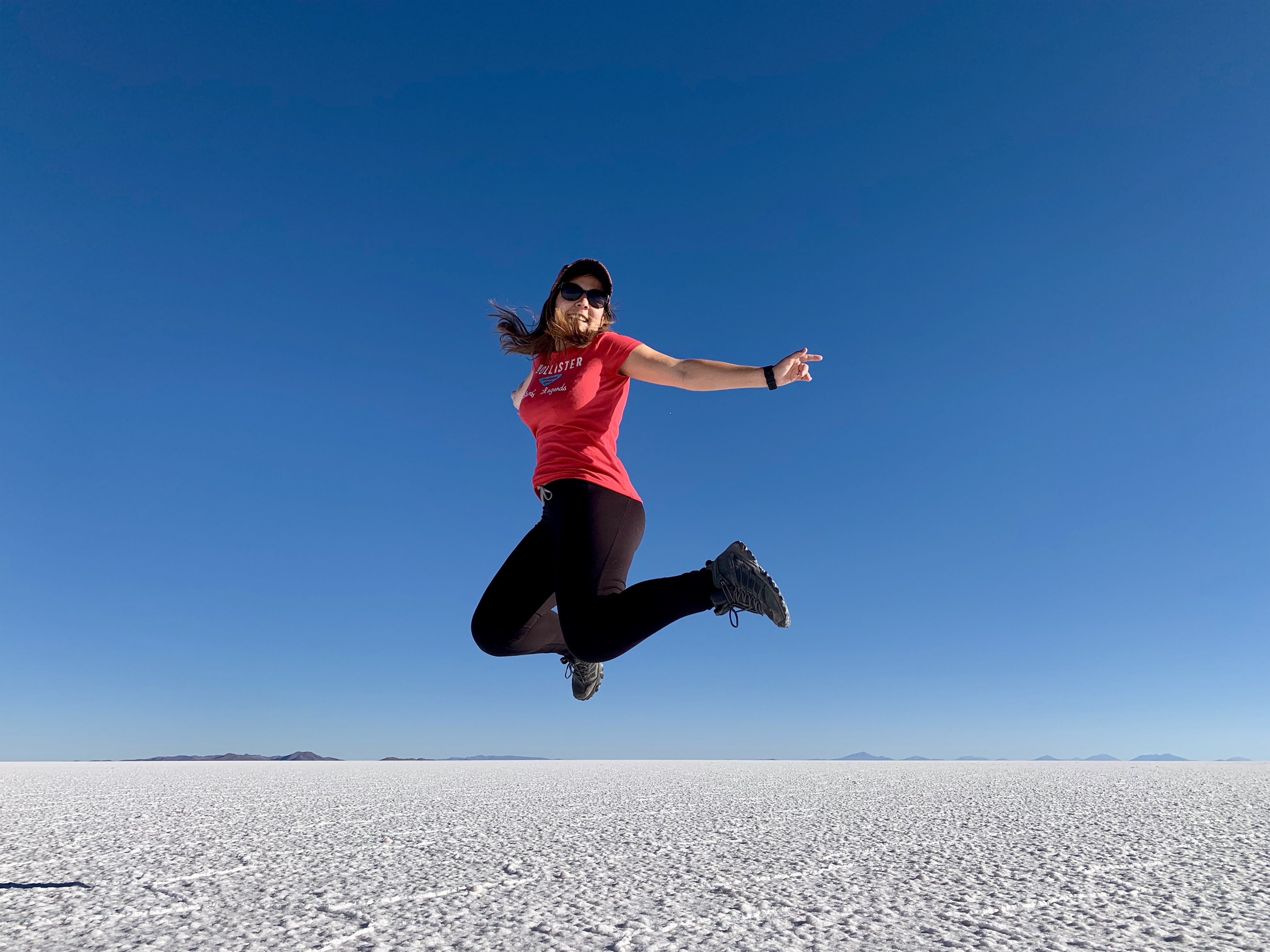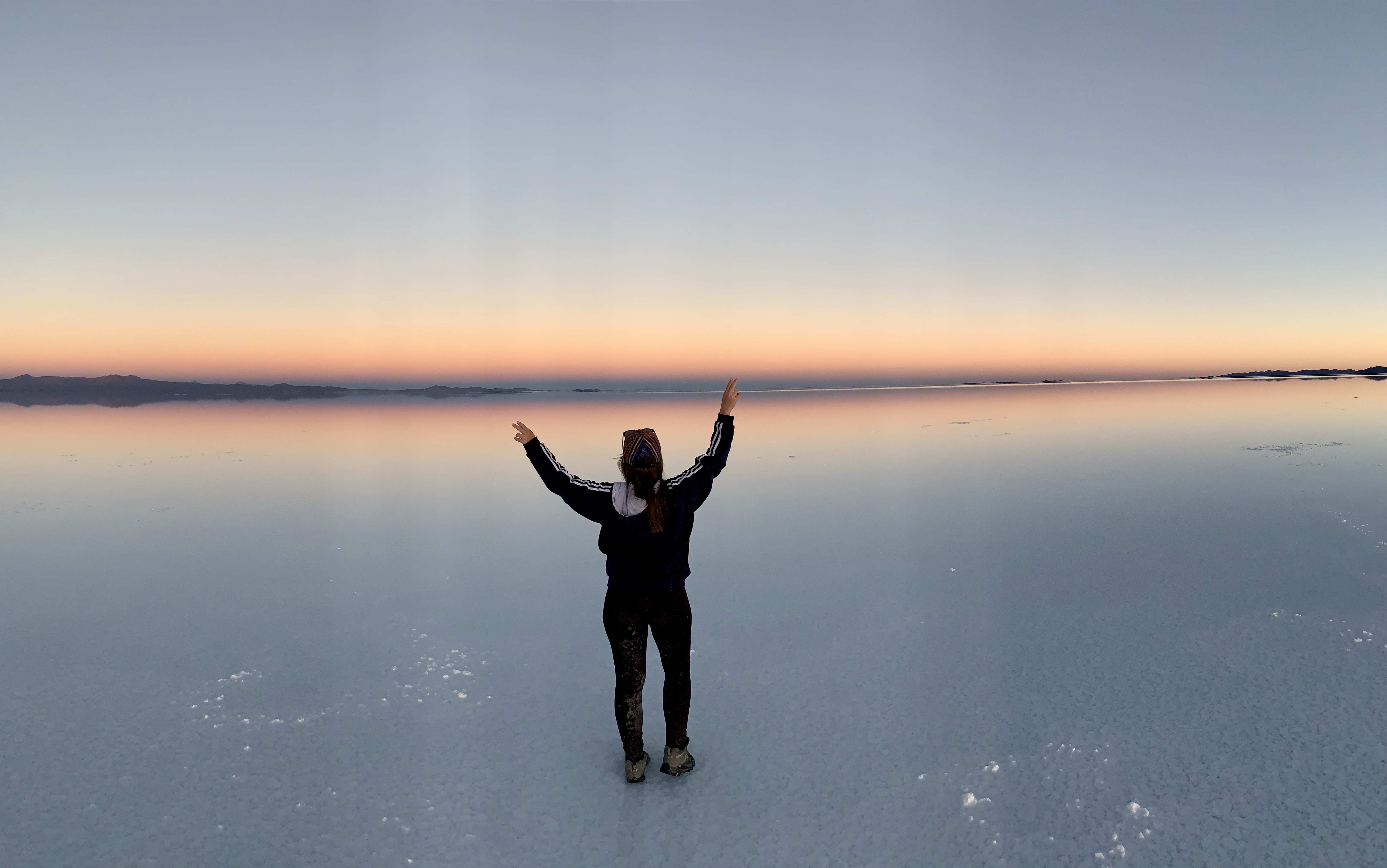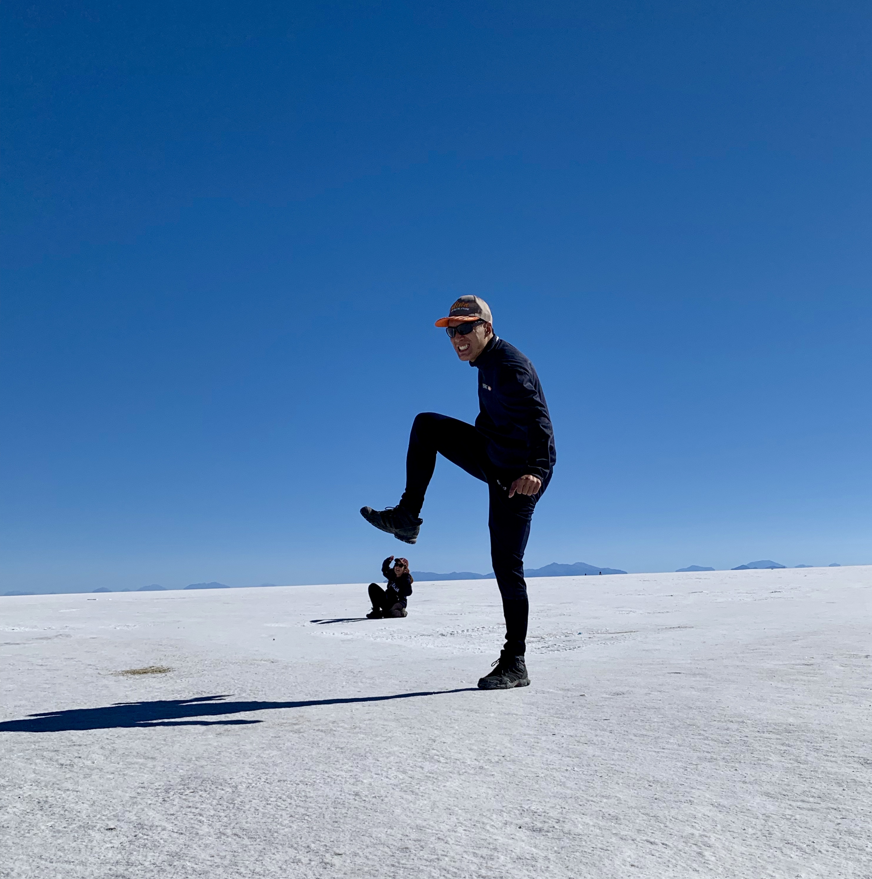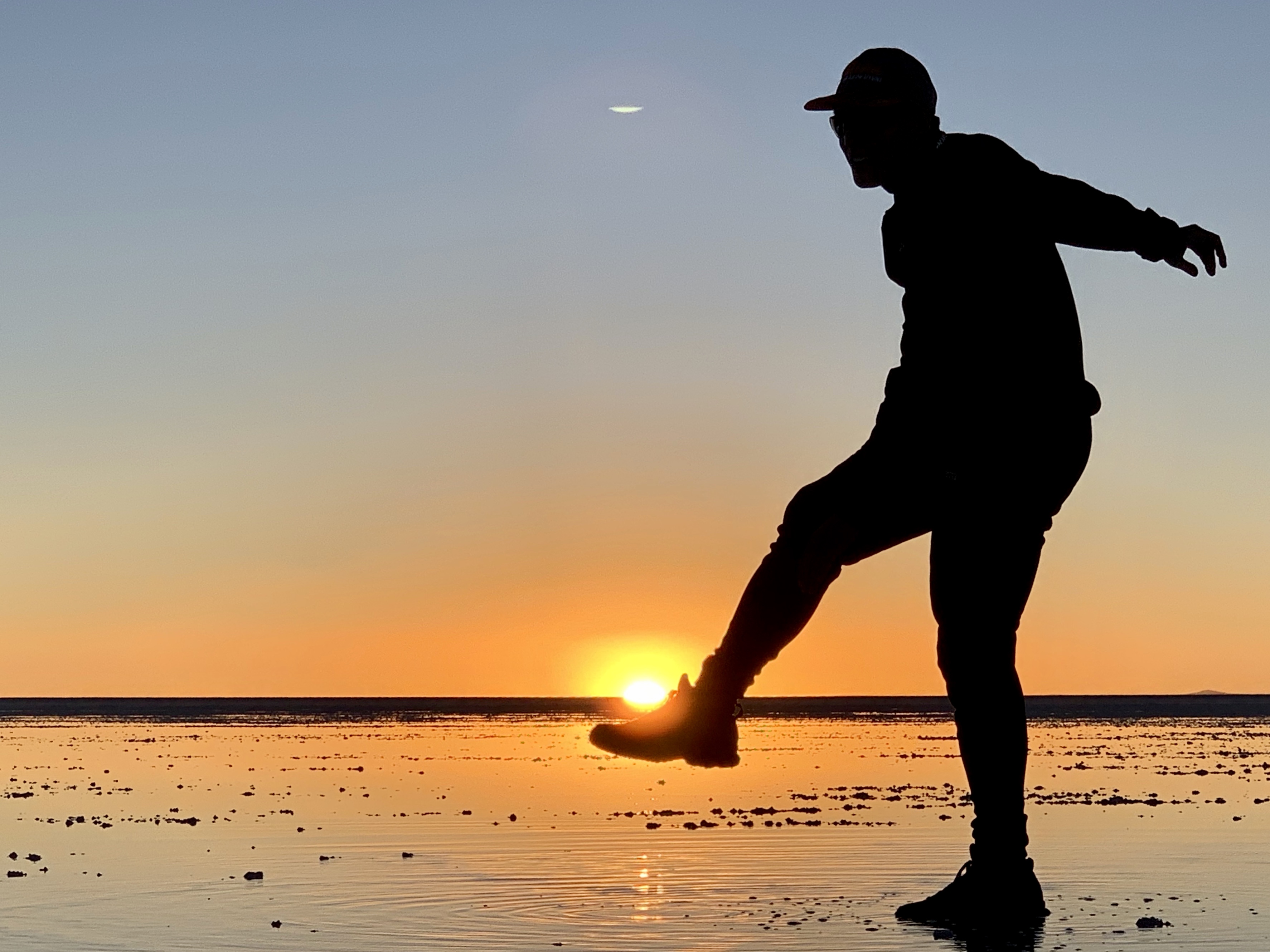 Après avoir laissé parler notre imagination pour les photos, nous sommes allés là où il y a un peu d’eau dans le désert de sel ce qui fait un effet miroir parfait ! C’était vraiment magique ! Je rappelle qu’aucune de nos photos n’ont été retouchées, ce sont les couleurs naturelles !