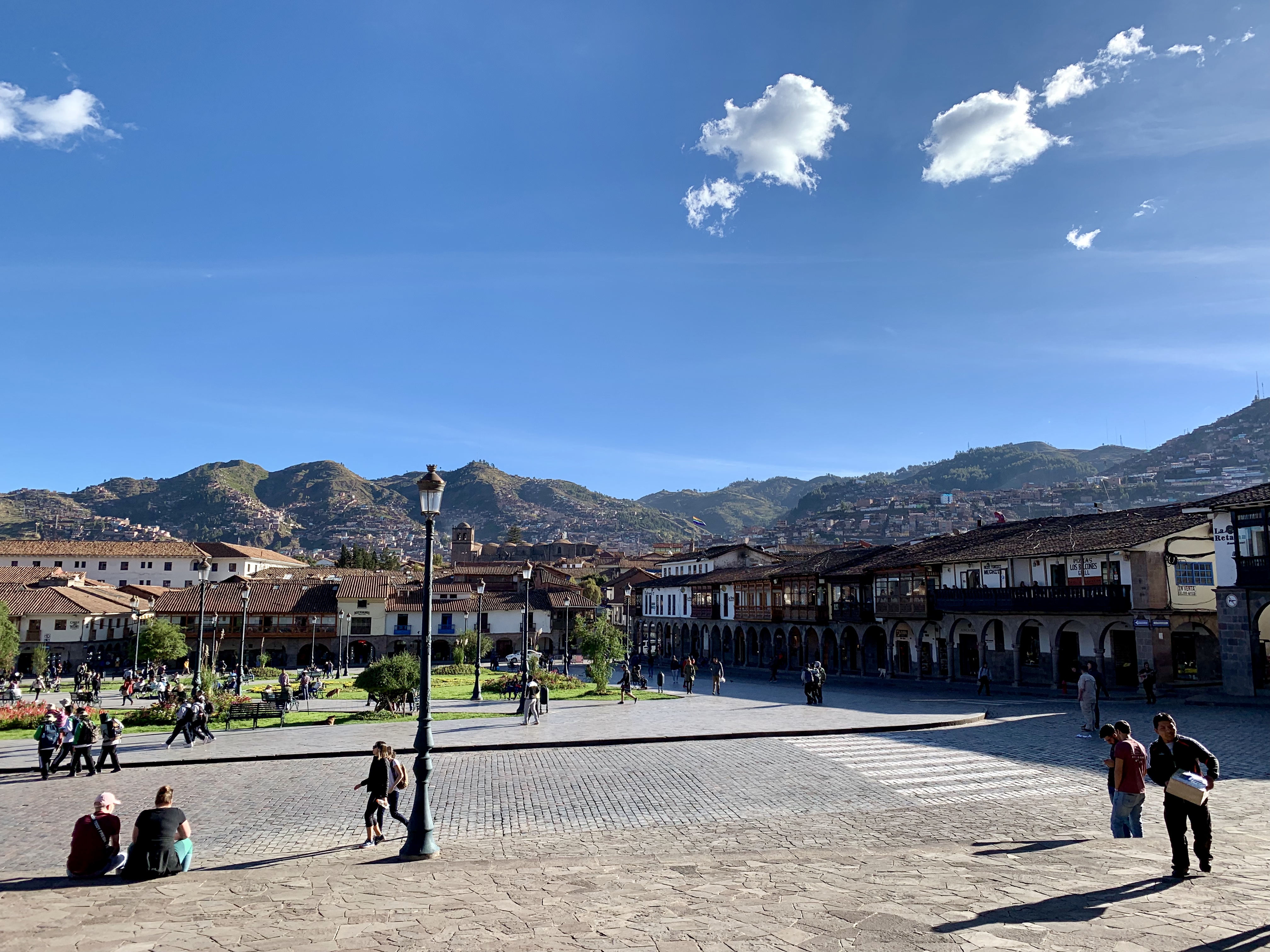 Cusco en espagnol péruvien (ou Cuzco en anglais) est située à 3 400 mètres avec 300 000 habitants. C’était la capitale des Incas mais s’est endormie quand l’activité commerciale s’est tournée vers Lima. Les conquistadors espagnols ont détruit une bonne partie de la ville au XVIe siècle mais il y reste tout de même quelques restes de l’empire inca dans le Centro historico.