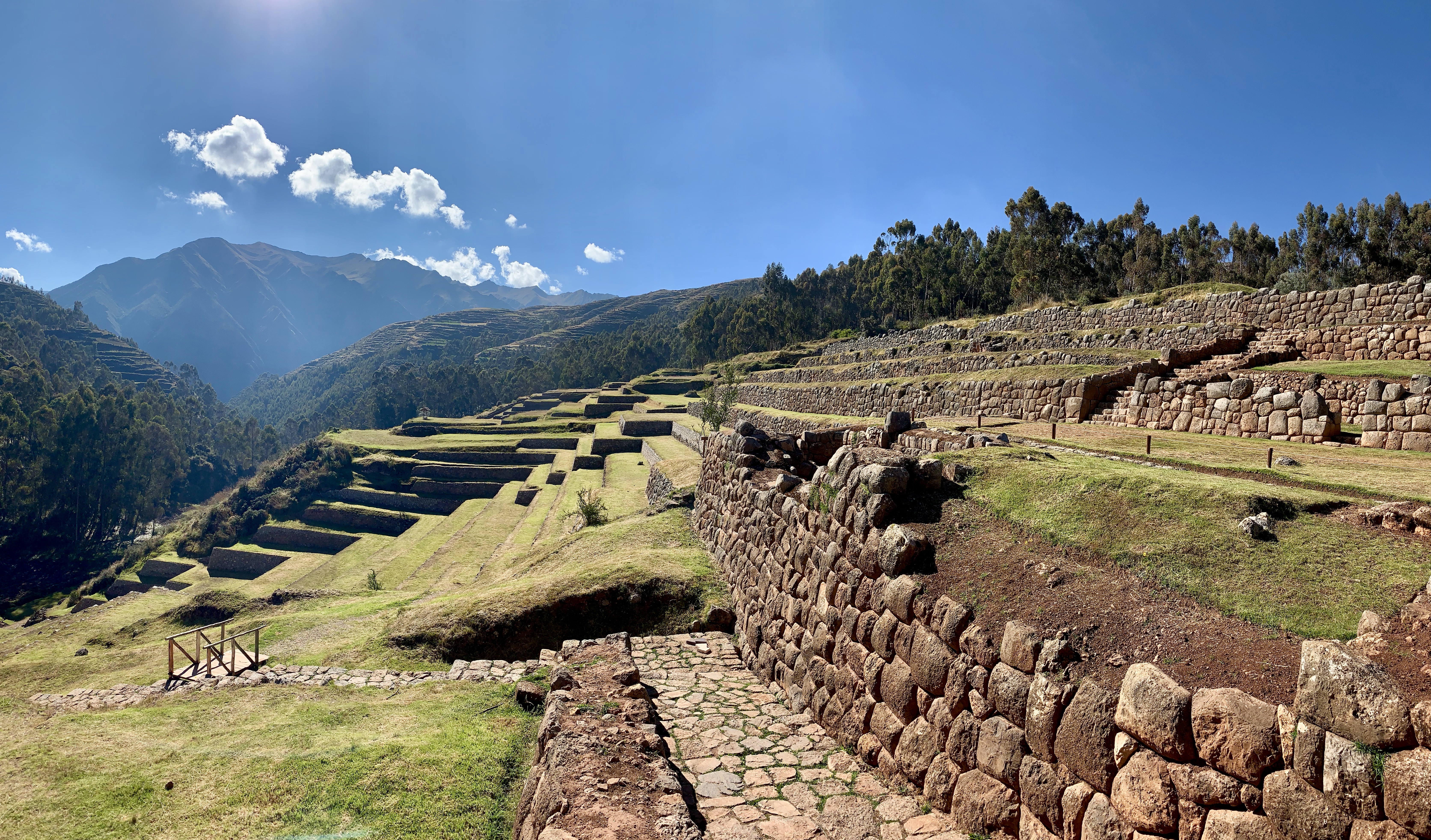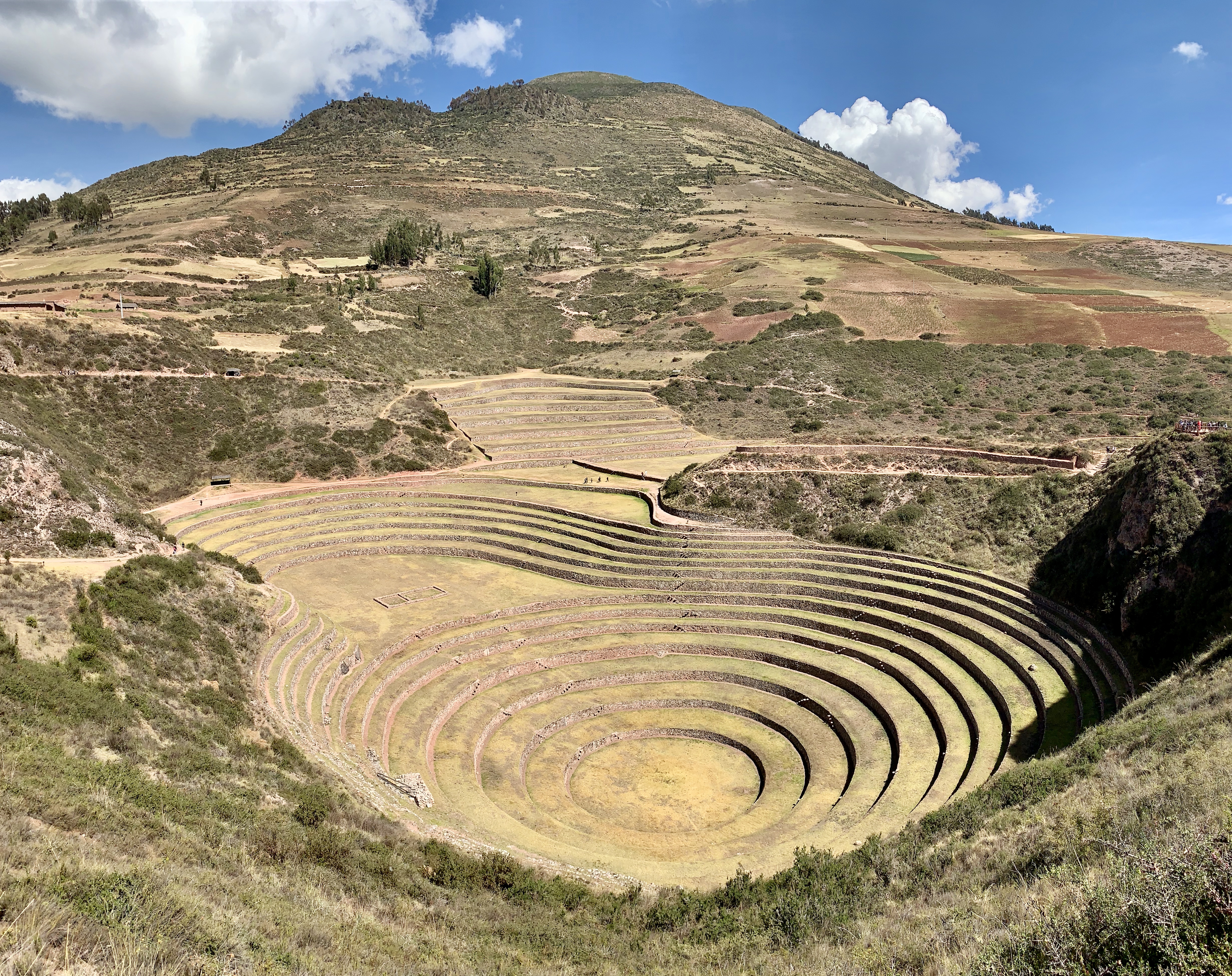 Construit dans les années 1420-1430 et nécessitant 40 ans de construction, ce centre de recherche agricole montre l’ingéniosité des incas il y a 600 ans ! Ces terrasses sont composées de 7 cercles quasi parfaits et 7 demi-cercles. Ce chiffre peut représenter les 7 jours de la semaine, les 7 dieux mythologiques de l’agriculture ou encore les 7 montagnes protectrices de Cusco. Le système de terrasse permet d’avoir différentes températures (jusqu’à 3 degrés de différence) et jusqu’à 20 microclimats différents pour cultiver 150 types de maïs et de pommes de terre différents ! Le système de drainage naturel grâce aux différentes couches de sédiment dans le sol est également très astucieux. La partie urbaine où quelques 500 familles vivaient a été détruite pour les espagnols, le temps et la pluie.