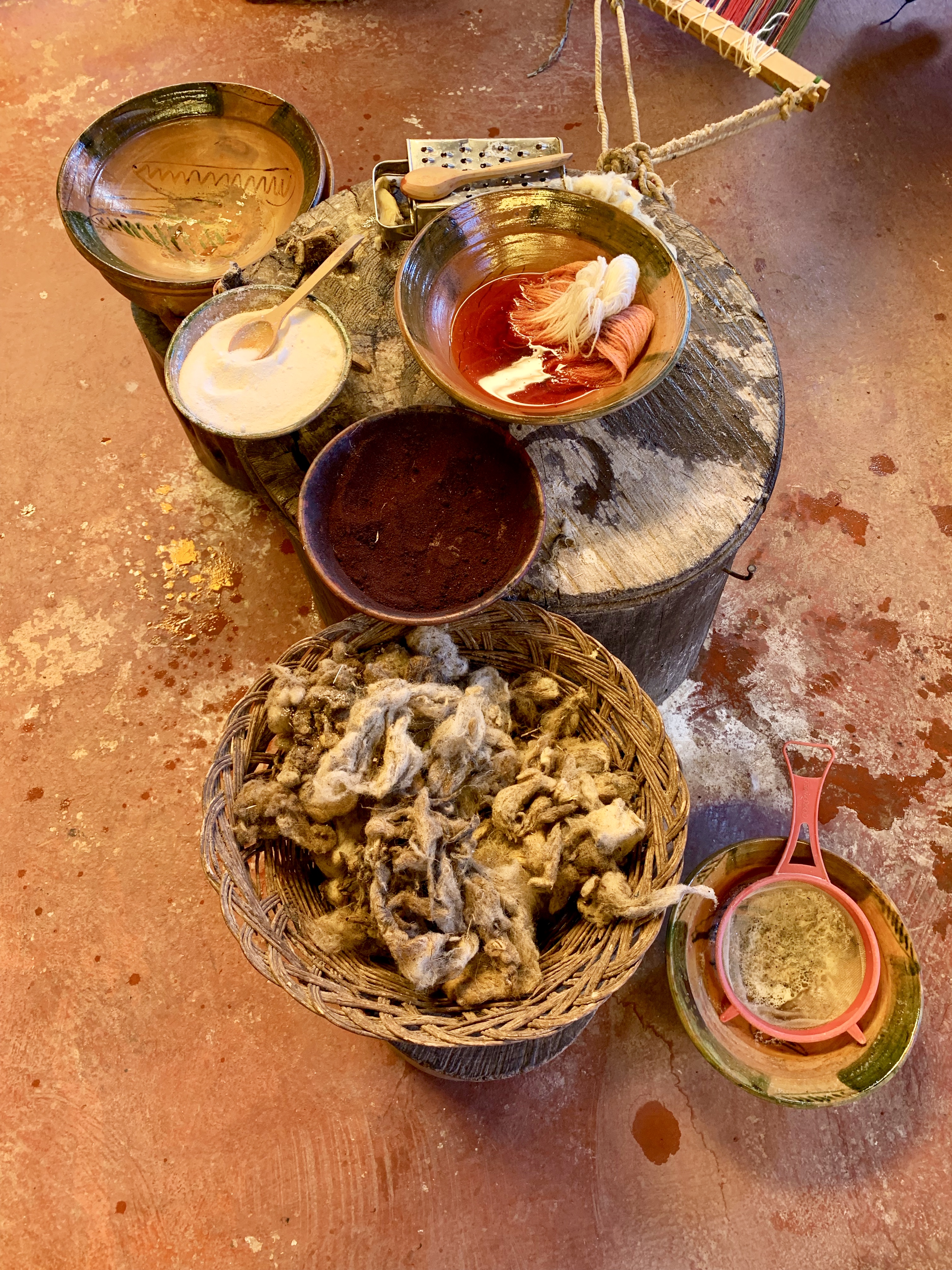 Le village est aujourd’hui connu pour son textile de qualité où tout est fait sur place et à la main. Nous avons vu une démonstration de lavage de laine et de coloration à partir d’éléments naturels, c’est très intéressant !